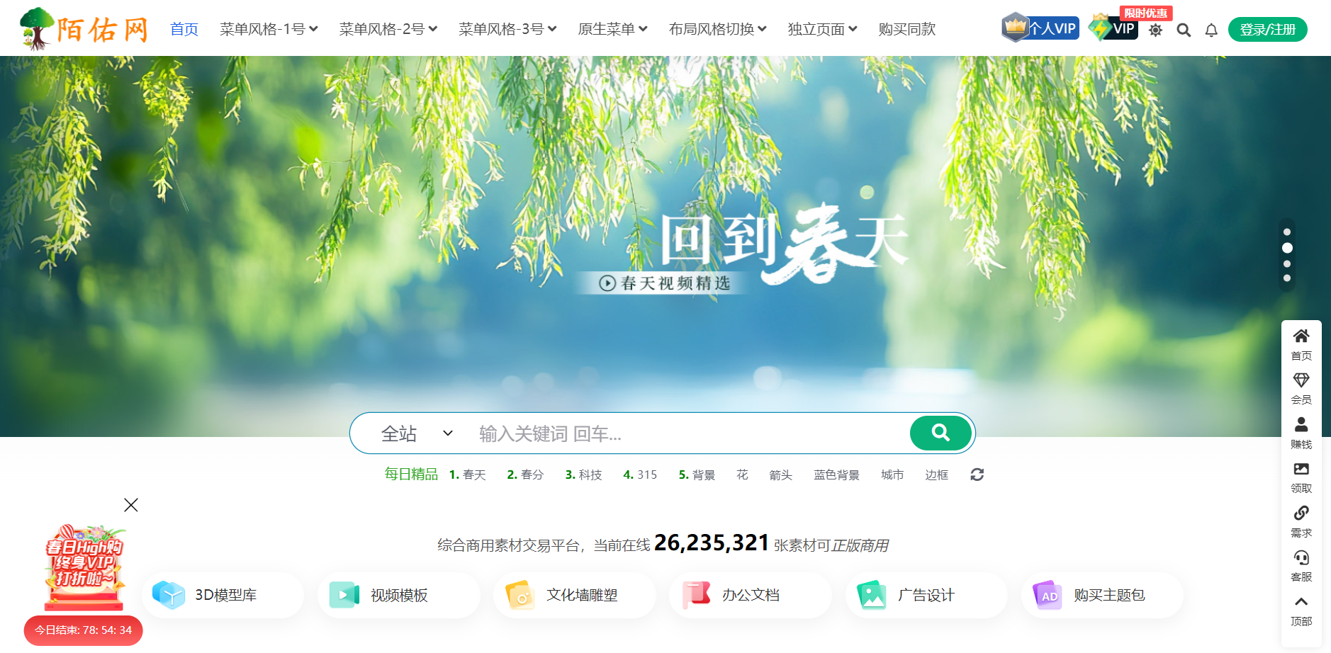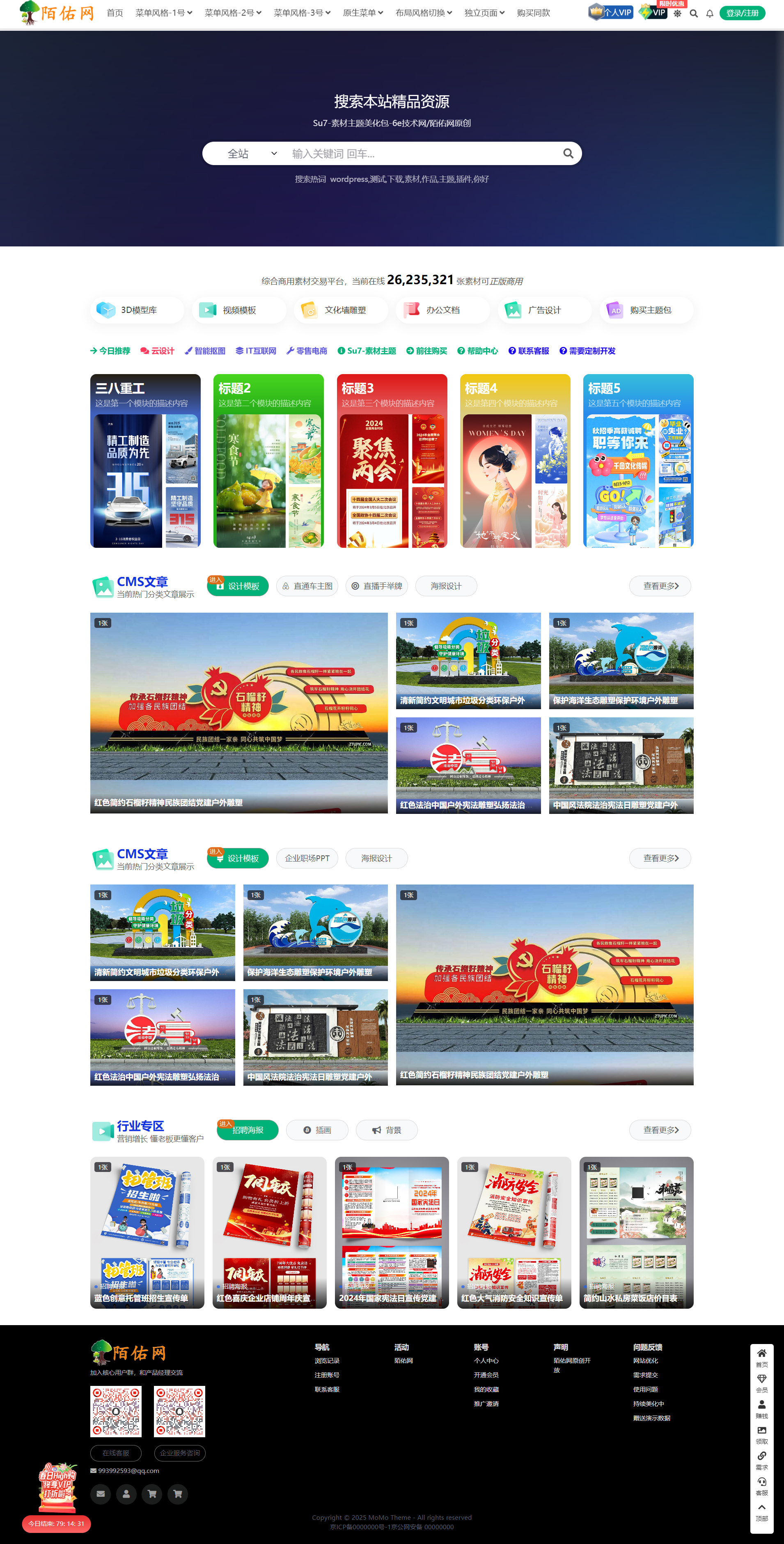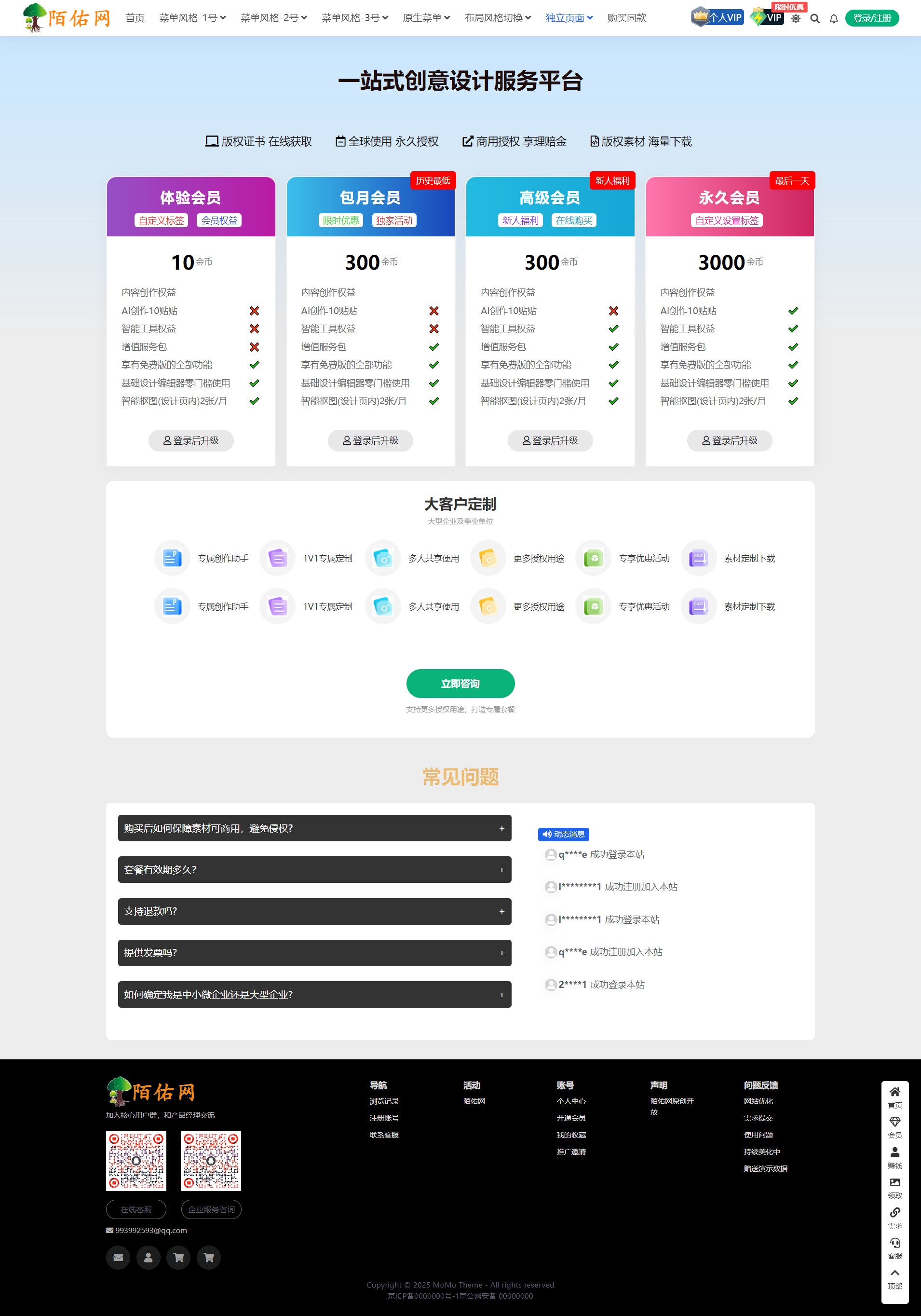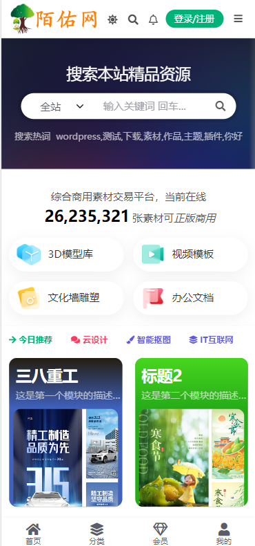 全新Mo-Su7素材会员主题,全局自定义配色,灵活配置布局,在其内置不同种类的风格模板,现代化的WordPress虚拟资源商城素材主题。支持首页模块化布局和WP原生小工具实时拖拽设置,同时支持了高级筛选、自带会员生态系统、超全支付接口等众多功能,无需依赖插件即可实现。此外,主题还支持卡密、充值、站内币、会员、推广佣金、统计、自定义币种、普通VIP 月卡 季卡 年卡 永久VIP,5种VIP类型,自定义会员标识、支持自定义SEO信息等多种功能,为您的网站提供更加完整的解决方案。